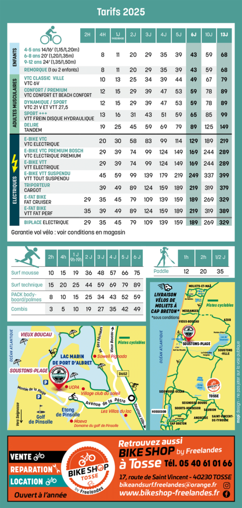 Location de vélos à Soustons, Vieux-Boucau, messanges